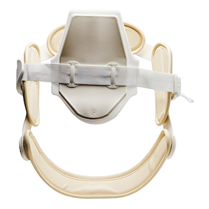 - Spring-loaded pelvic band is hinged for easy transition from sitting to standing