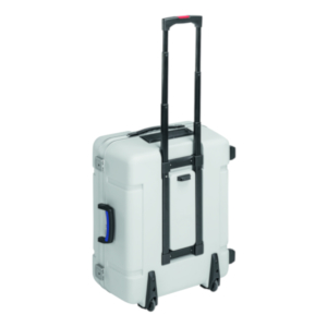 - A transport case with wheels and pull-out handle in which all components are stored. The two sides of the case also serve as tripod feet for the camera tripods. Alternatively, the system can be removed from the case and permanently installed in one place