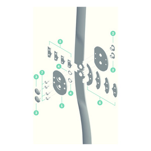 Stainless steel Polycentric knee joint bars with gear drive. Joints have interchangeable stops to limit extension as well as flexion, concave half-round bar profilePièces de rechange