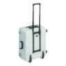 - A transport case with wheels and pull-out handle in which all components are stored. The two sides of the case also serve as tripod feet for the camera tripods. Alternatively, the system can be removed from the case and permanently installed in one place
