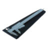 Stainless steel, chromed matt graduation and Vernier scale, lower division in mm, upper division in inches.