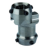 The adapter connects two prosthetic components with pyramid adapters and allows medial or lateral adjustment in the frontal plane or a dorsal or ventral adjustment in the sagittal plane.