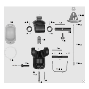 The upper joint section with pyramid adapter and lower joint section with tube clamp are connected through an axis. The adjustable manual lock in the lower joint section secures the joint in the extension position. The lock is released using the lock cable.Accessories