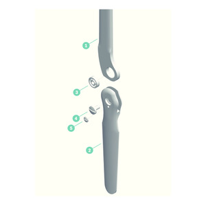 Stainless steel joints with ball bearing, joint center placed to the posterior, concave half-round bar profile, forged upper and lower joint bars and the heads of both bars offset outsidePièces de rechange