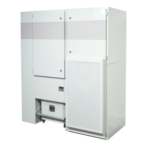 - Equipment Suction performance regulated by frequency controller, exhaust nozzle top left, air return via filter system, motorised cleaning, fine particle filter, 99.99% cleaning performance, slide control, controller for automatic start-up of processing machines with potential-free contact