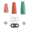 1 lower bearing shell, 2 rubber bumpers (hard, medium, soft), 1 base plate, 2 hexagon nuts
